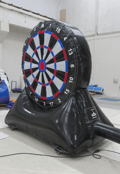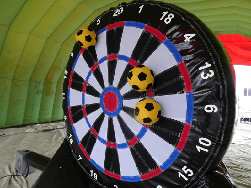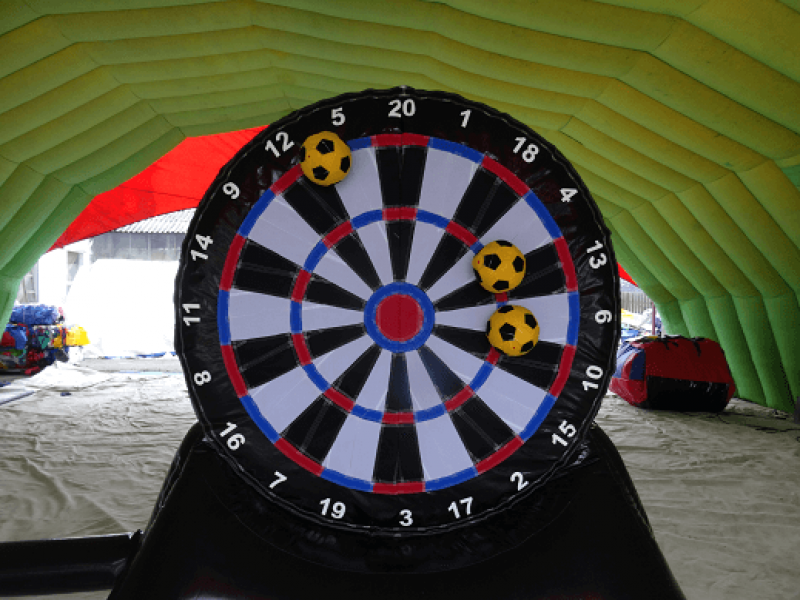 Deltagerne sparker en borrelås fotball mot stor oppblåsbar dartskive som erstatter pilene i vanlig dart. Der ballen treffer skiven, vises poengsummen du får. Morsom og ny måte å teste sine fotballferdigheter på, og best av alt her finnes ingen aldersgrense, alle kan spille dette spillet.