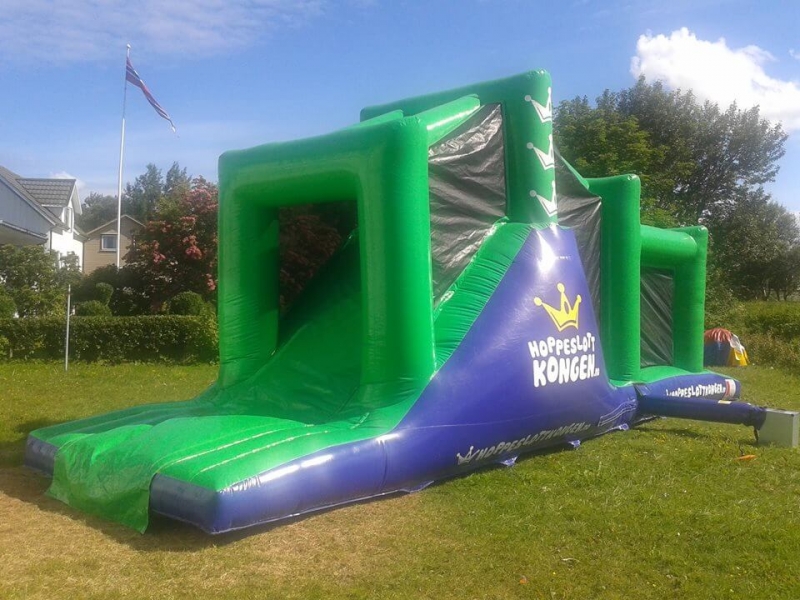 Her kan barna utfolde seg i en 10 meter lang hinderløype som inkluderer hindere du må komme deg over, under, gjennom og en morsom sklie.