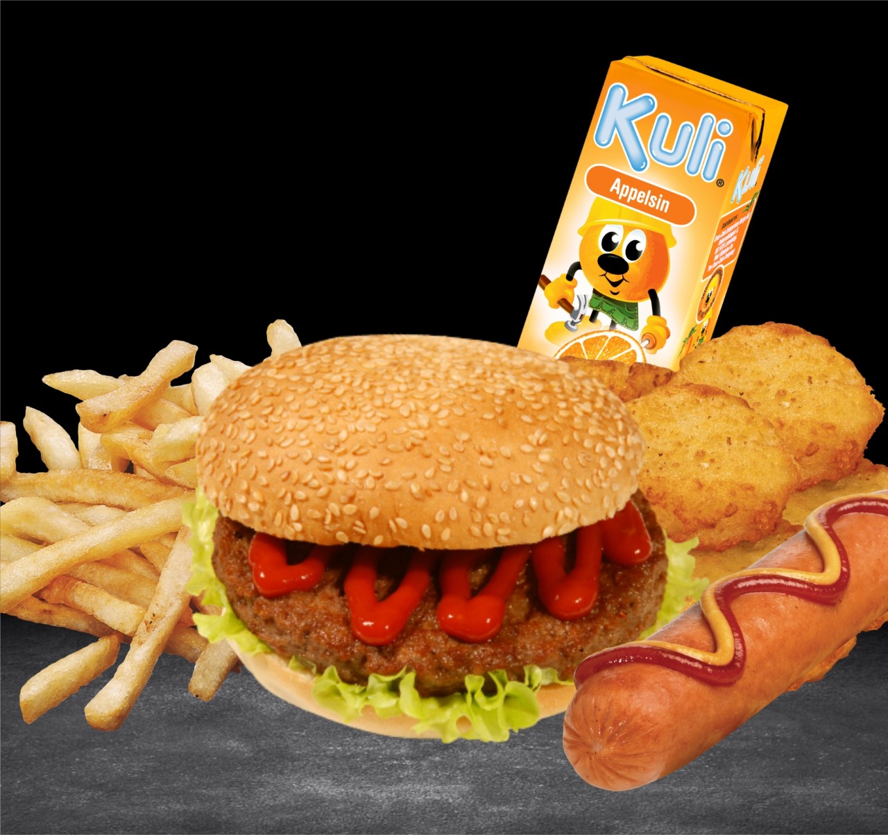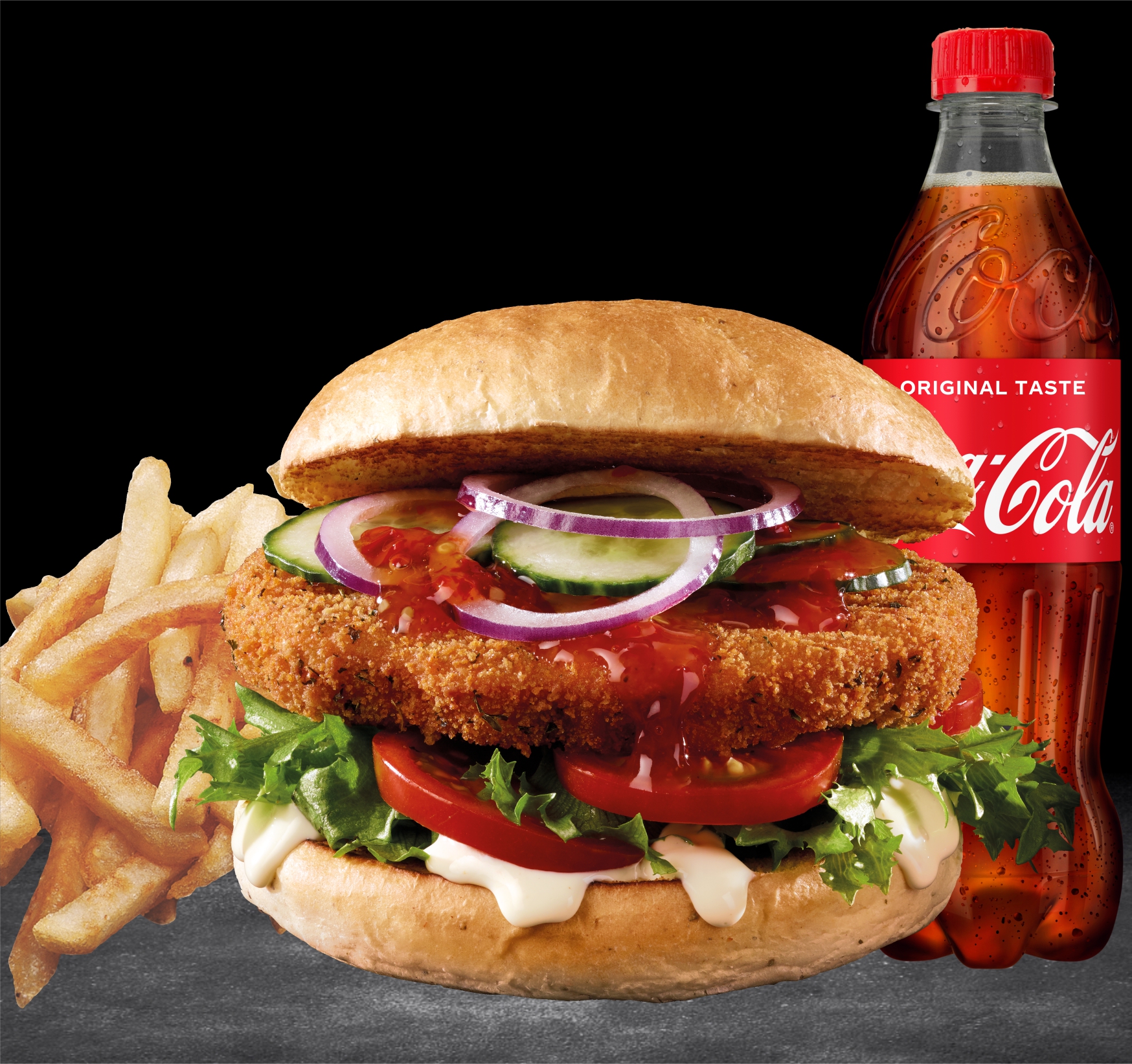 Kyllingburgermeny inkl pommes og 0,5l drikke